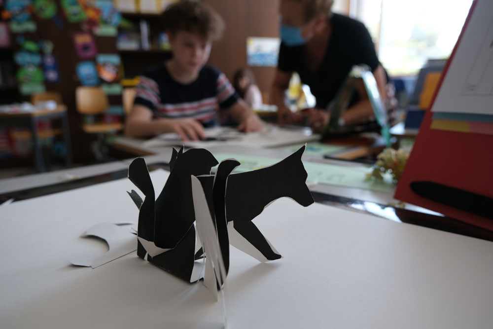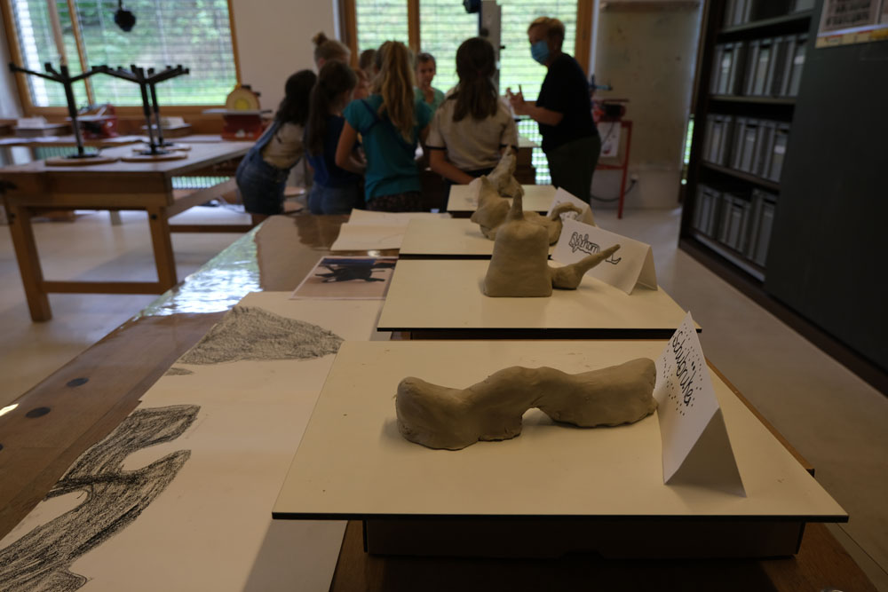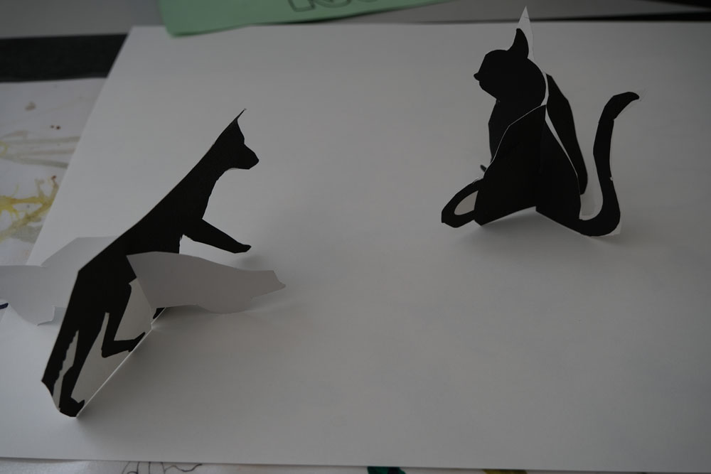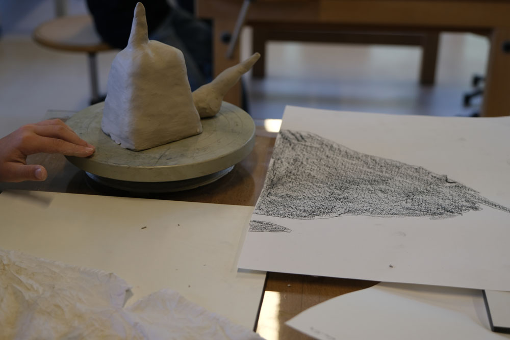Par un jeu d’ombre, les élèves transforment un objet pour lequel ils ont un attachement particulier en une création nouvelle et surprenante. Les objets reçoivent progressivement une nouvelle signification par une série d’allers et retours entre la silhouette et l’espace en 3D: les formes sont d’abord dessinées, puis découpées dans du carton et recombinées, enfin sculptées en terre glaise. Qu’est-ce que cela va donner? C’est parti!