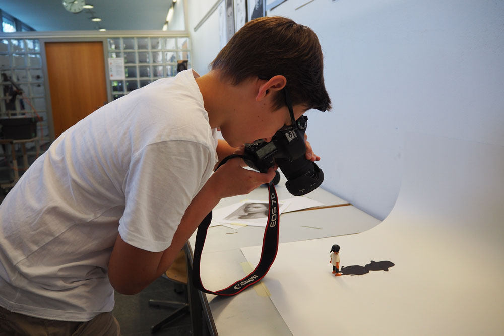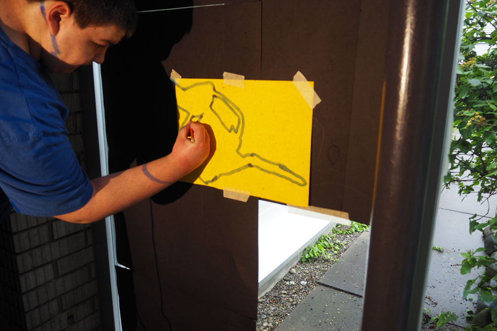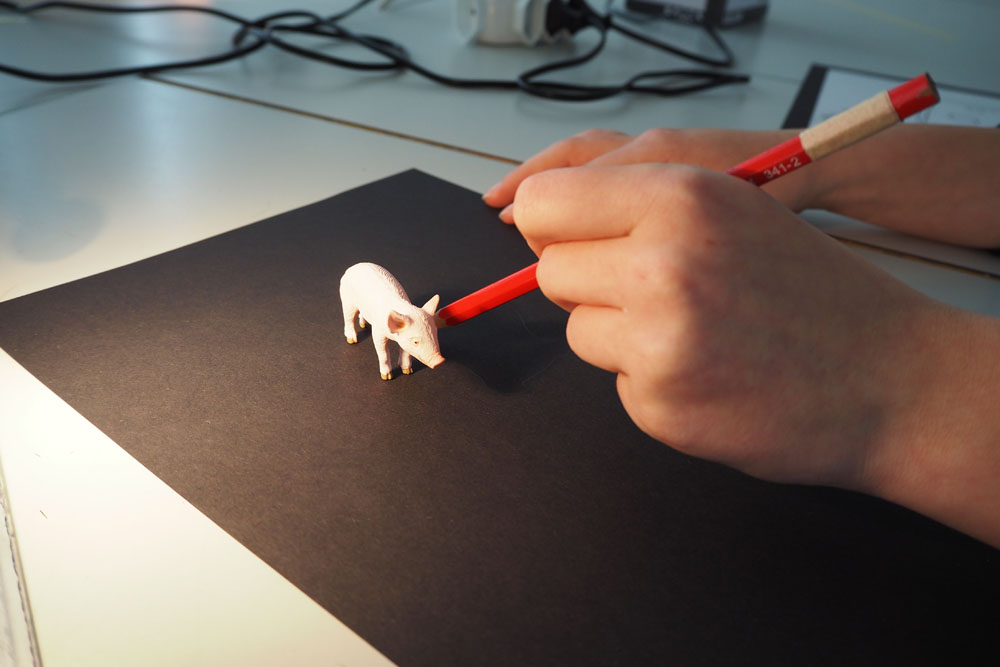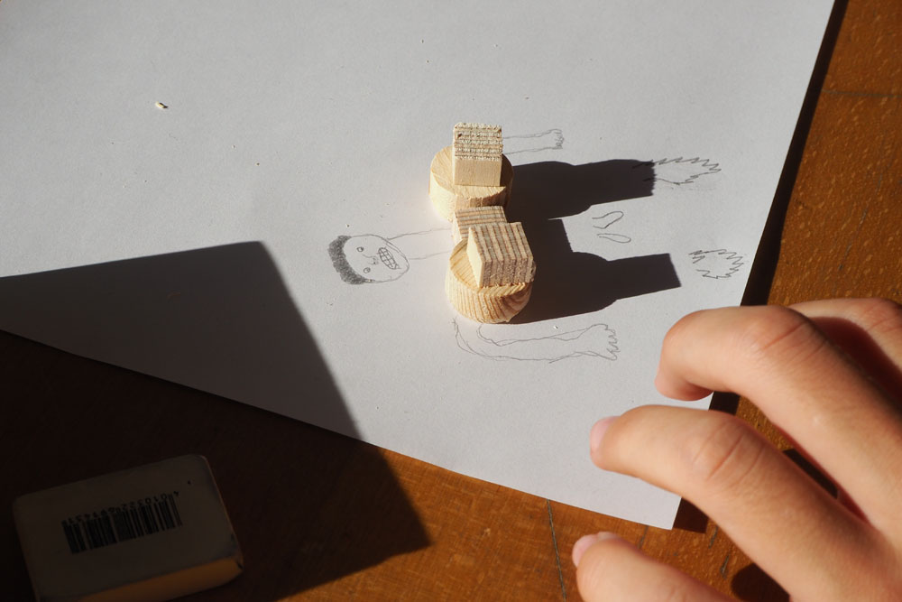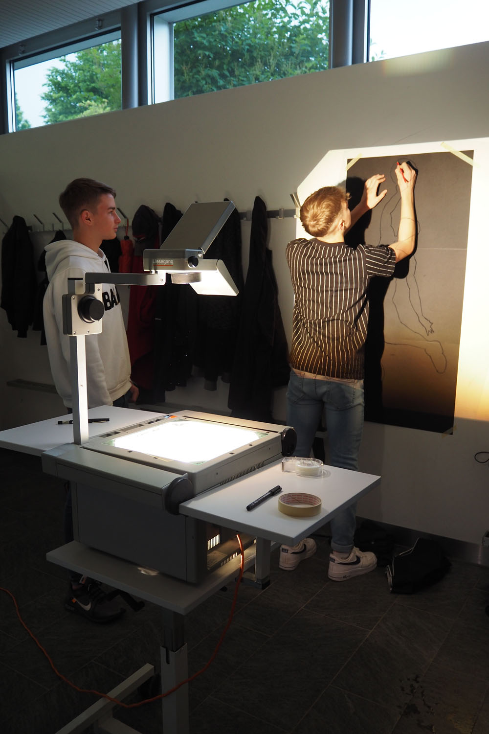 En s’appropriant l’espace, les élèves s’inscrivent à leur tour dans le mouvement du street art et de l’art de l’installation. À l’aide de différents matériaux et procédés, ils expérimentent les possibilités qu’offrent l’ombre et la lumière. Les silhouettes qui en résultent sont approfondies, transformées et détournées. Elles passent successivement de l’espace au plan, et vice-versa, ou apparaissent agrandies dans les espaces extérieurs de la classe. Ces silhouettes animent l’environnement de l’école, nous racontent une histoire ou nous transmettent un message. De nouvelles lectures de l’architecture quotidienne voient le jour et invitent à réfléchir à ce qui appartient l’espace commun.