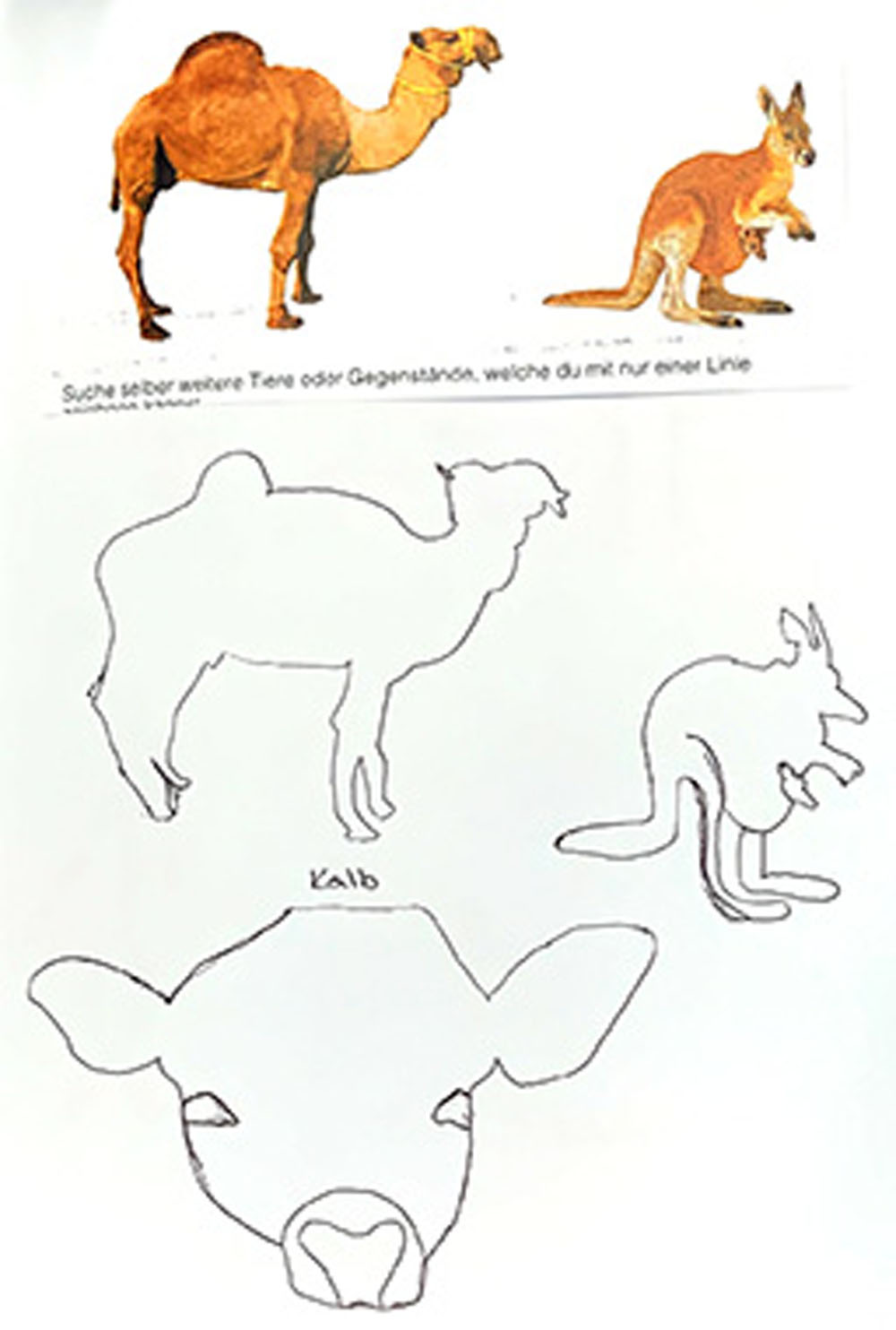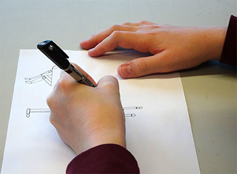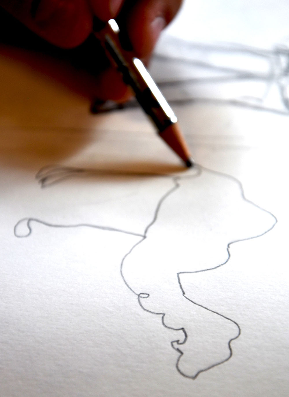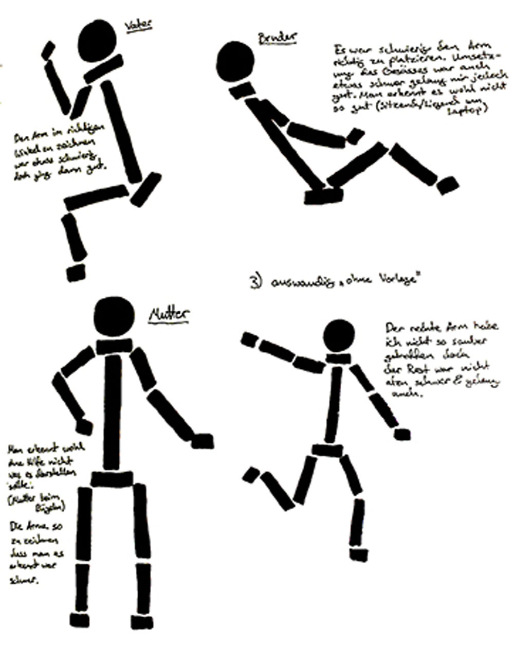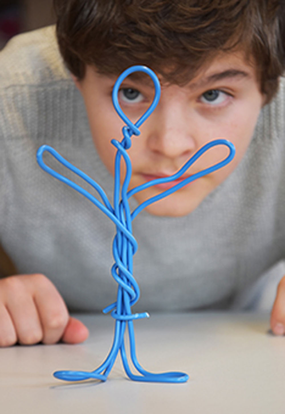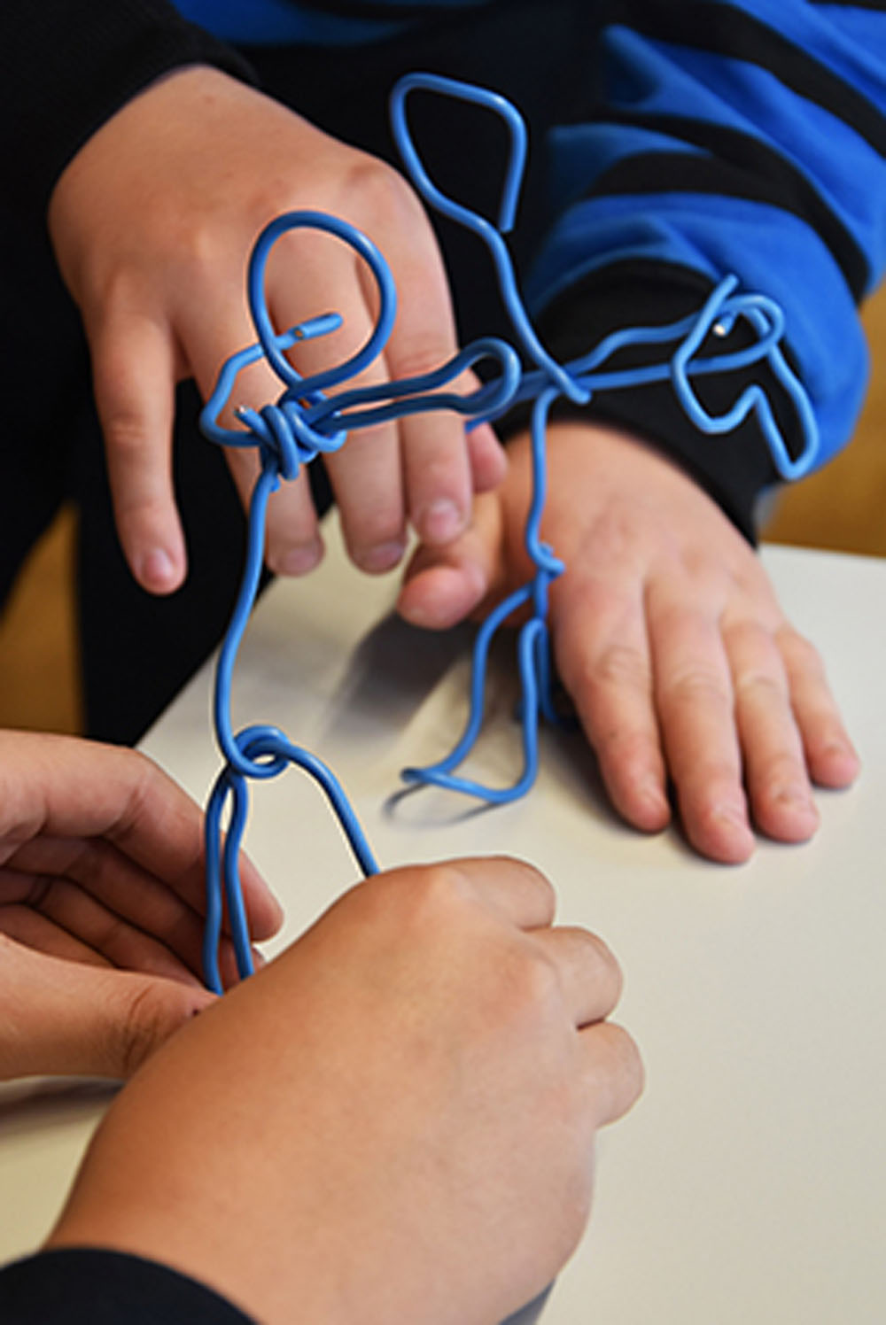 il y a plus de 40 000 ans. Jusqu’au Moyen Âge, le dessin était considéré comme un artisanat. Depuis la Renaissance, il représente une forme d’art à part entière. Le dessin figuratif occupe aujourd’hui encore une position majeure dans le champ artistique. Les élèves élaborent des figures en action par des dessins rapides, puis les mettent en scène dans l’espace à l’aide de fil de fer gainé et de ruban adhésif.