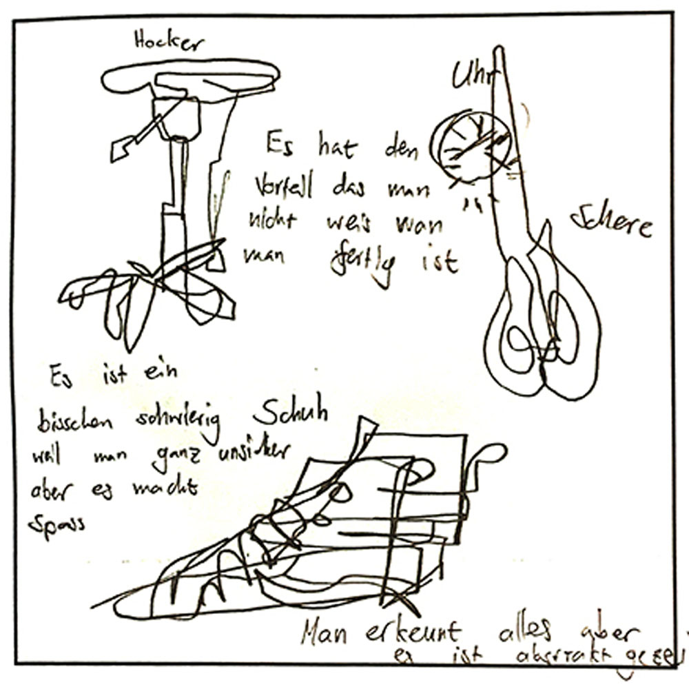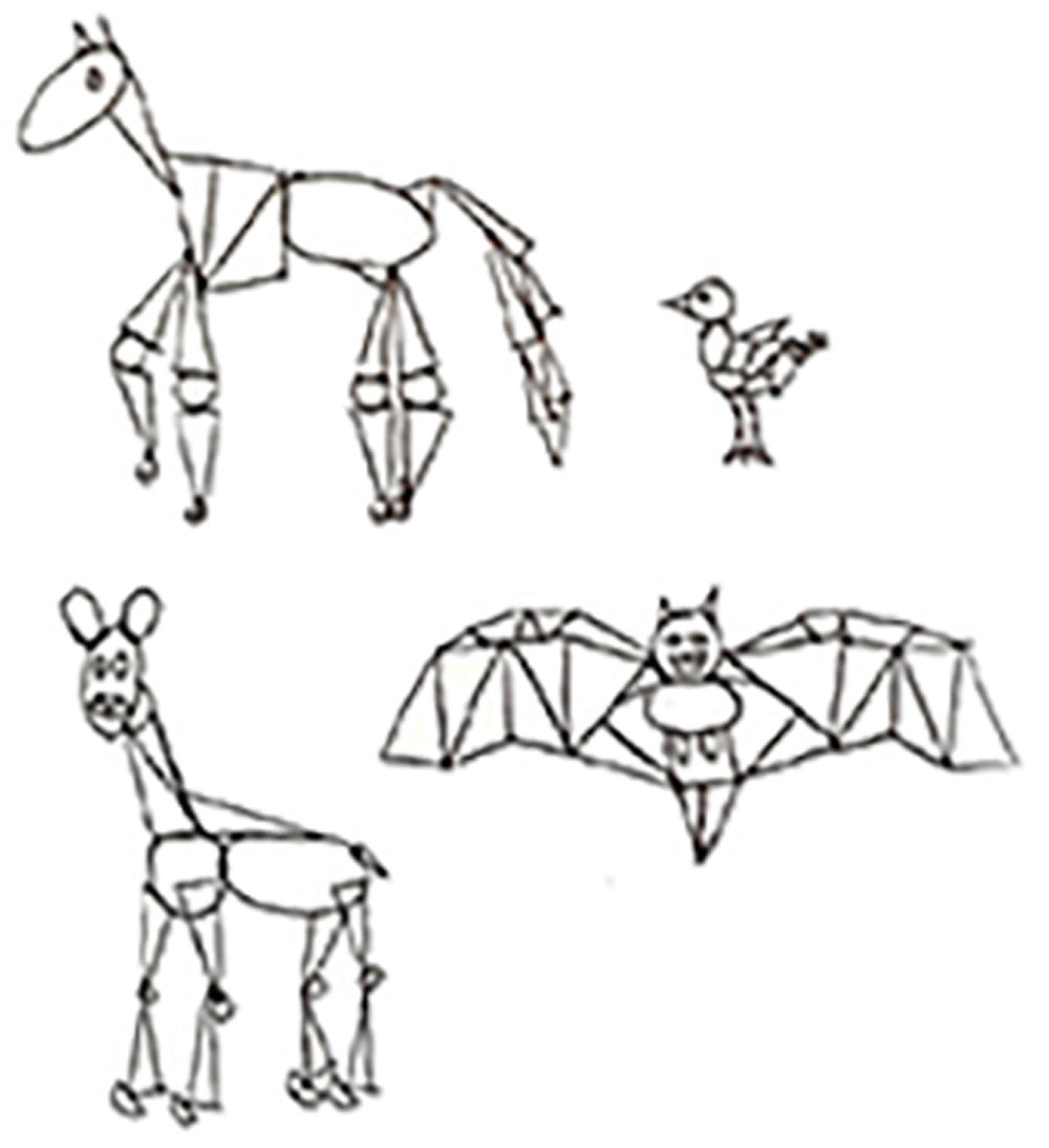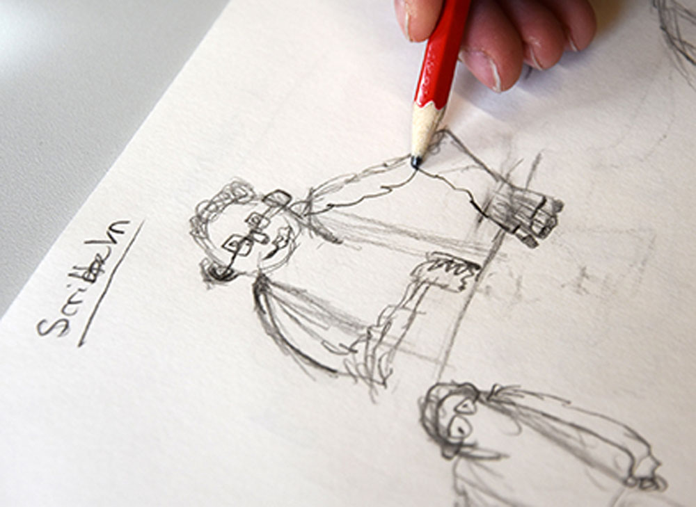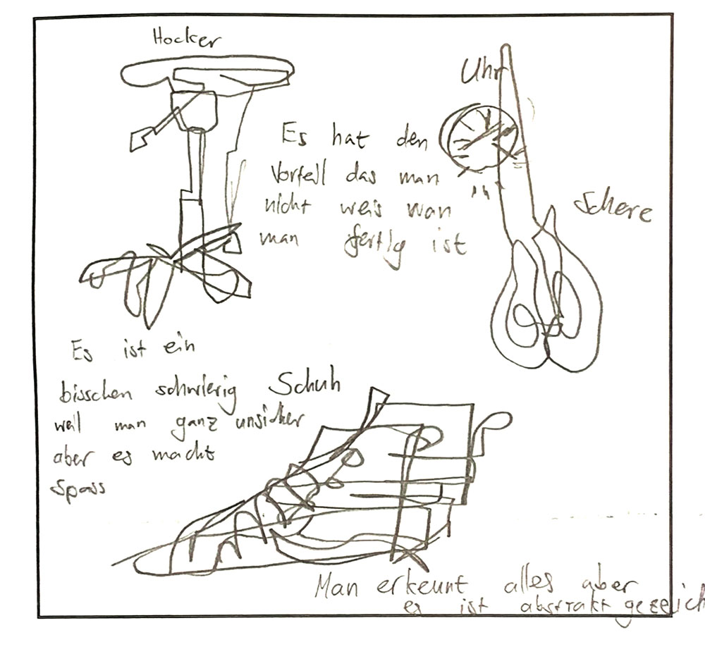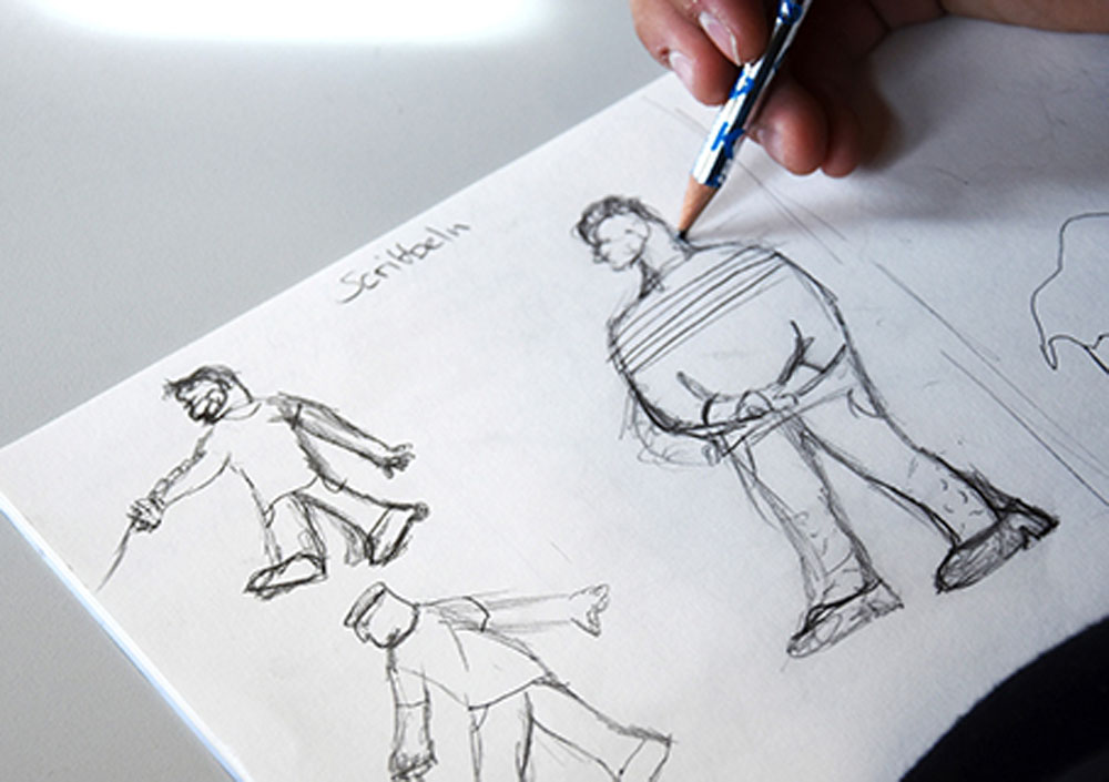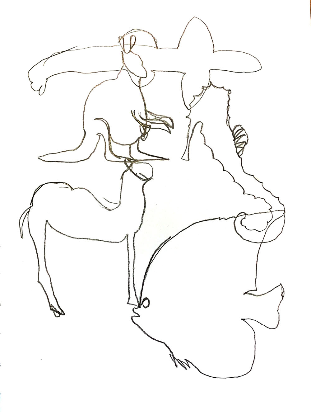 il y a plus de 40 000 ans. Jusqu’au Moyen Âge, le dessin était considéré comme un artisanat. Depuis la Renaissance, il représente une forme d’art à part entière. Le dessin figuratif occupe aujourd’hui encore une position majeure dans le champ artistique. Les élèves élaborent des figures en action par des dessins rapides, puis les mettent en scène dans l’espace à l’aide de fil de fer gainé et de ruban adhésif.