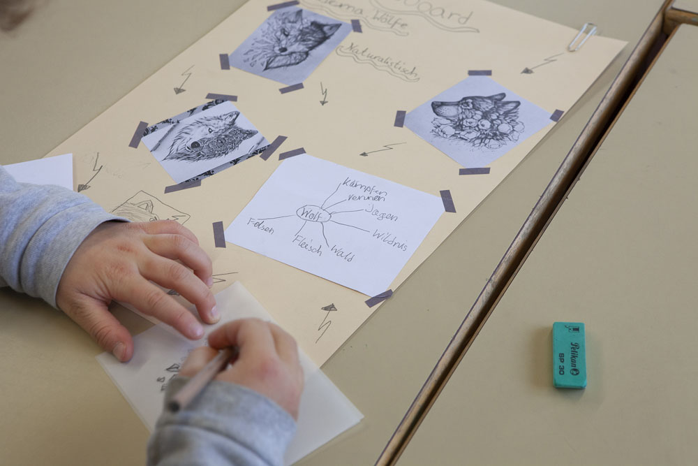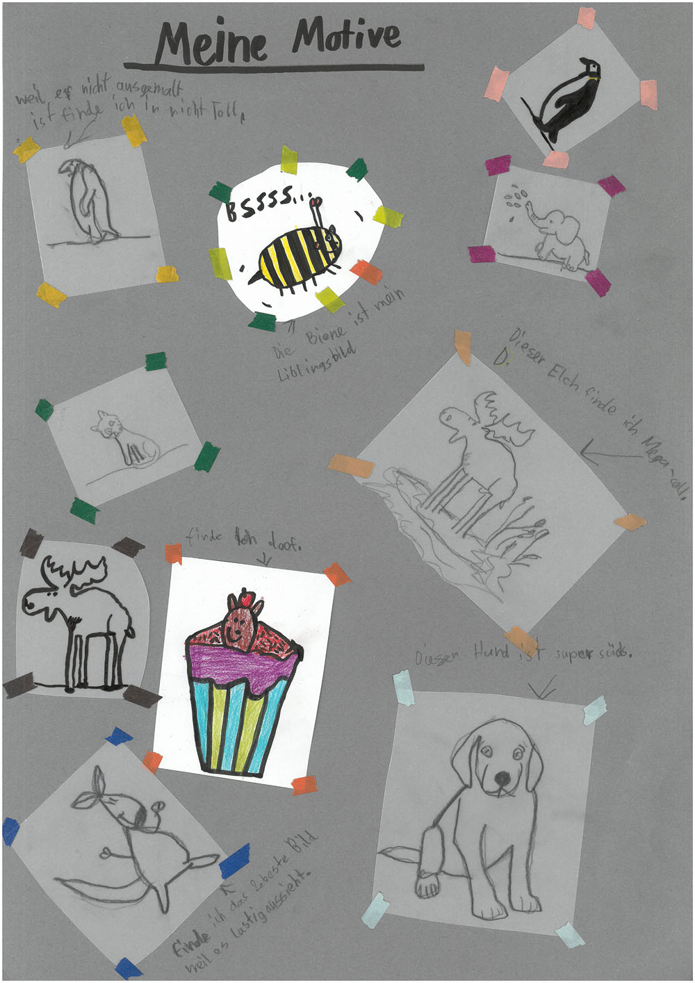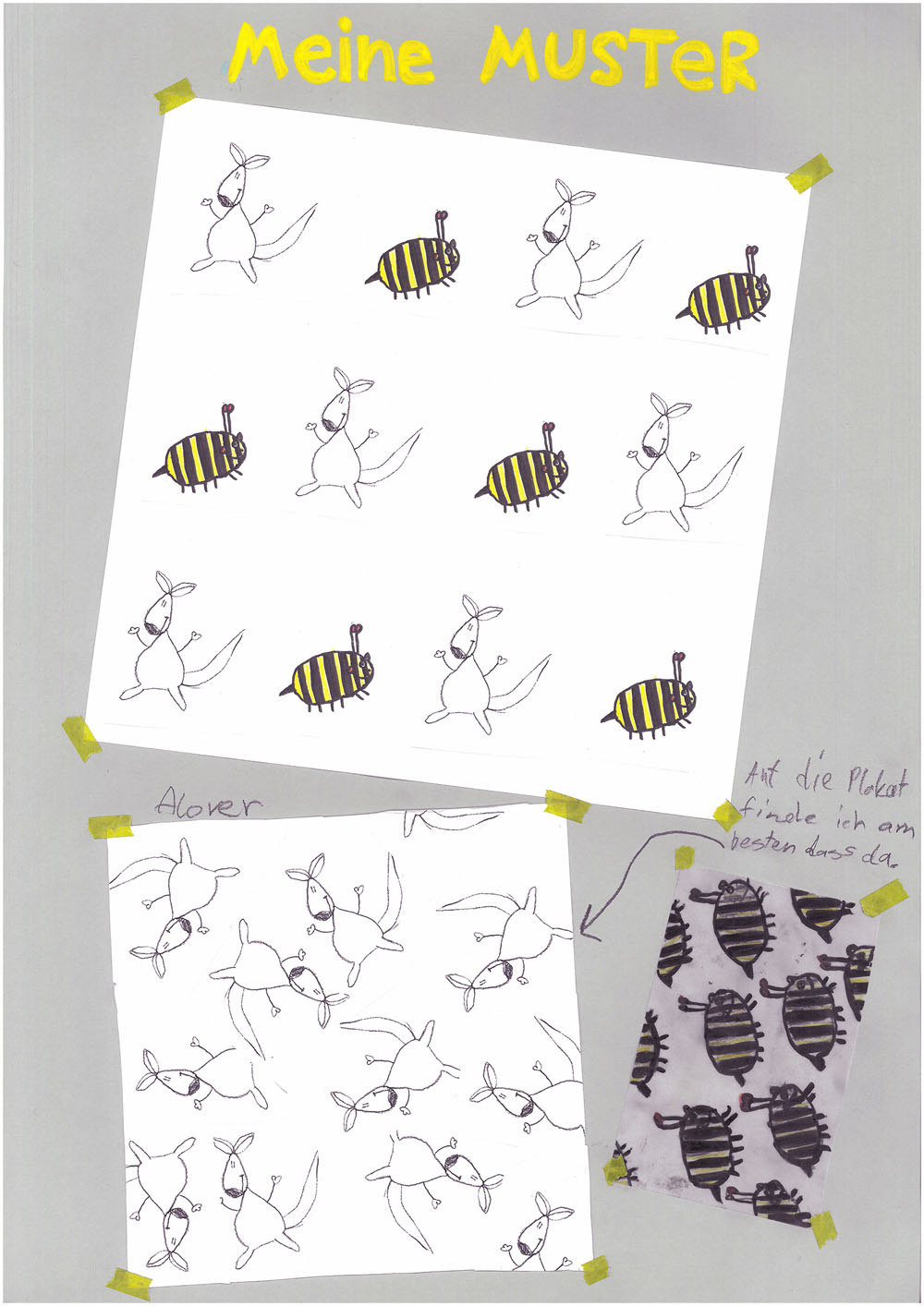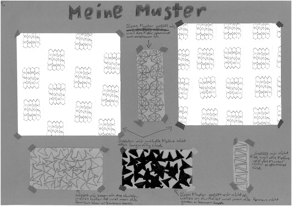 Partant de leurs propres intérêts, les élèves créent une planche d’inspiration (moodboard), dessinent des éléments graphiques et les réunissent dans une collection de motifs. Ils et elles se familiarisent avec le vocabulaire technique et les méthodes pour composer des motifs, et documentent leur processus de création. La séquence d’enseignement se concentre sur la découverte ludique d’éléments