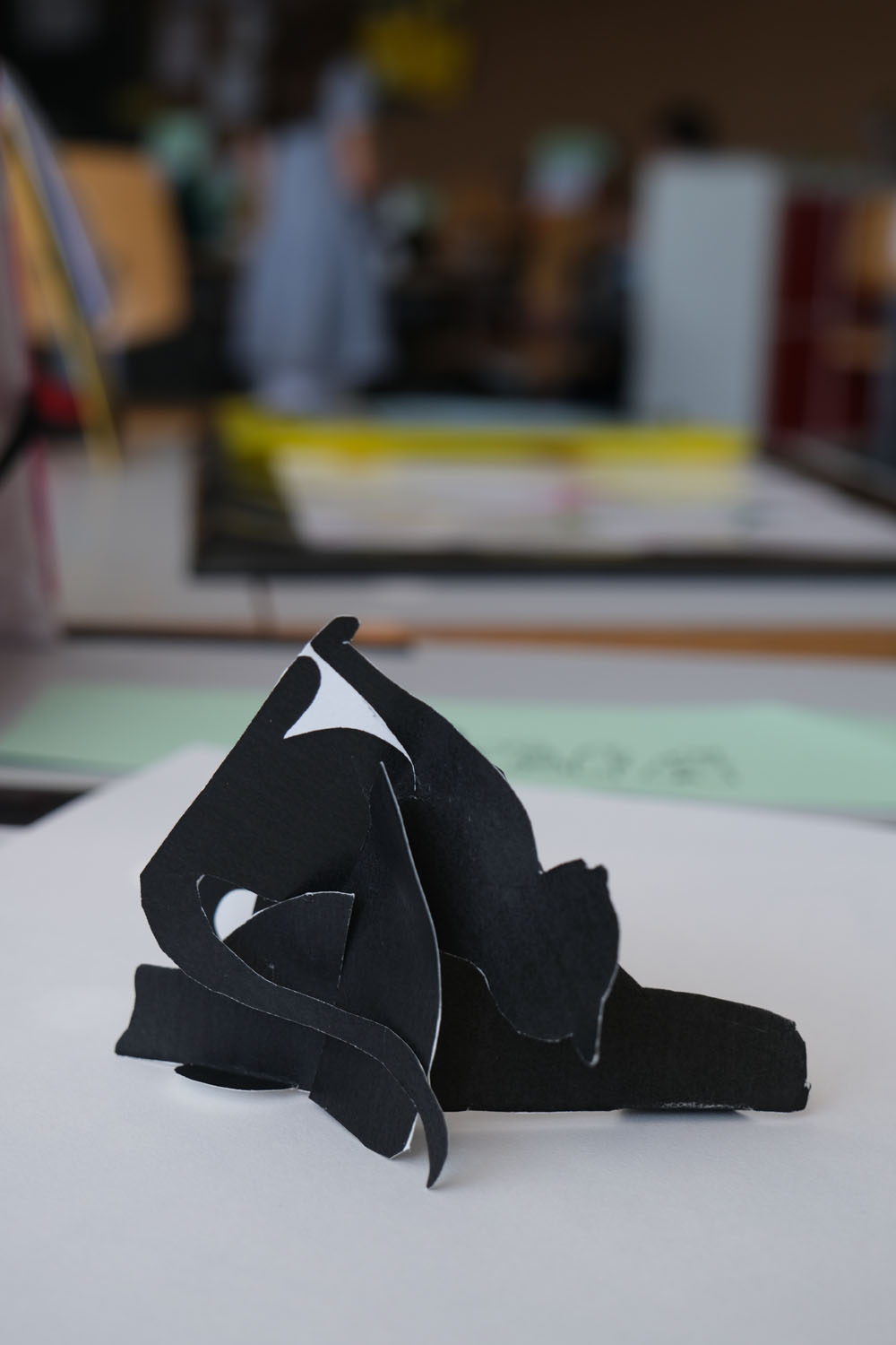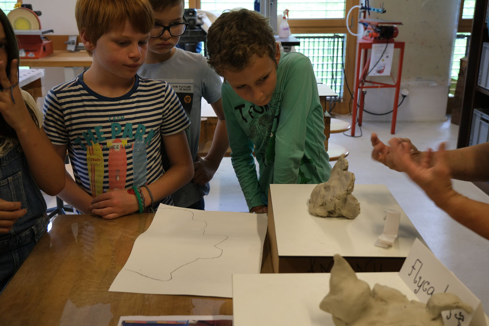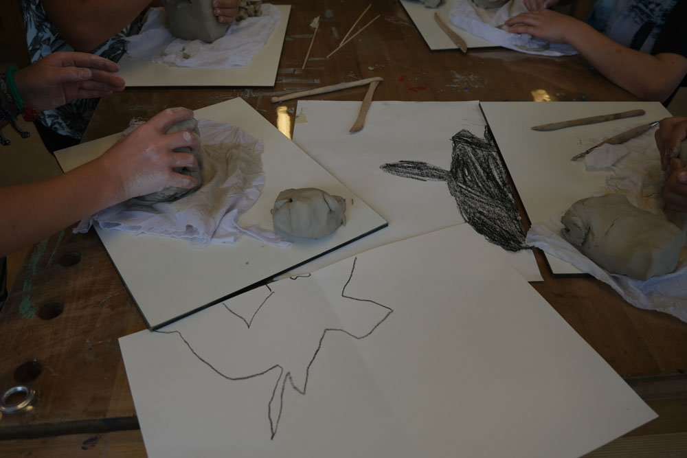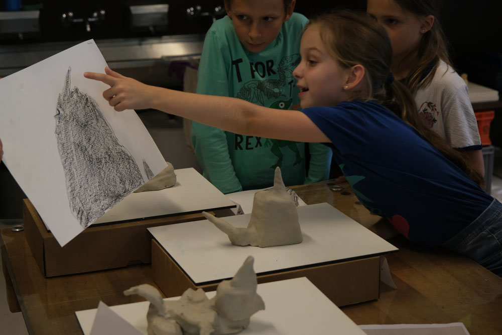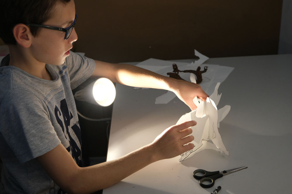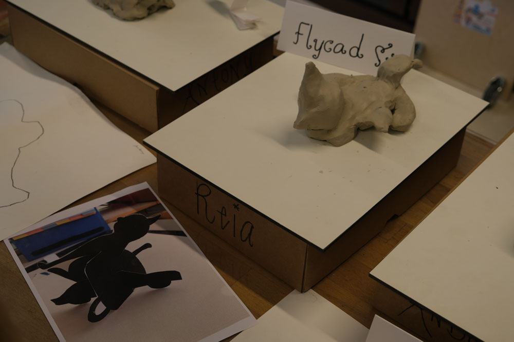 Par un jeu d’ombre, les élèves transforment un objet pour lequel ils ont un attachement particulier en une création nouvelle et surprenante. Les objets reçoivent progressivement une nouvelle signification par une série d’allers et retours entre la silhouette et l’espace en 3D: les formes sont d’abord dessinées, puis découpées dans du carton et recombinées, enfin sculptées en terre glaise. Qu’est-ce que cela va donner? C’est parti!