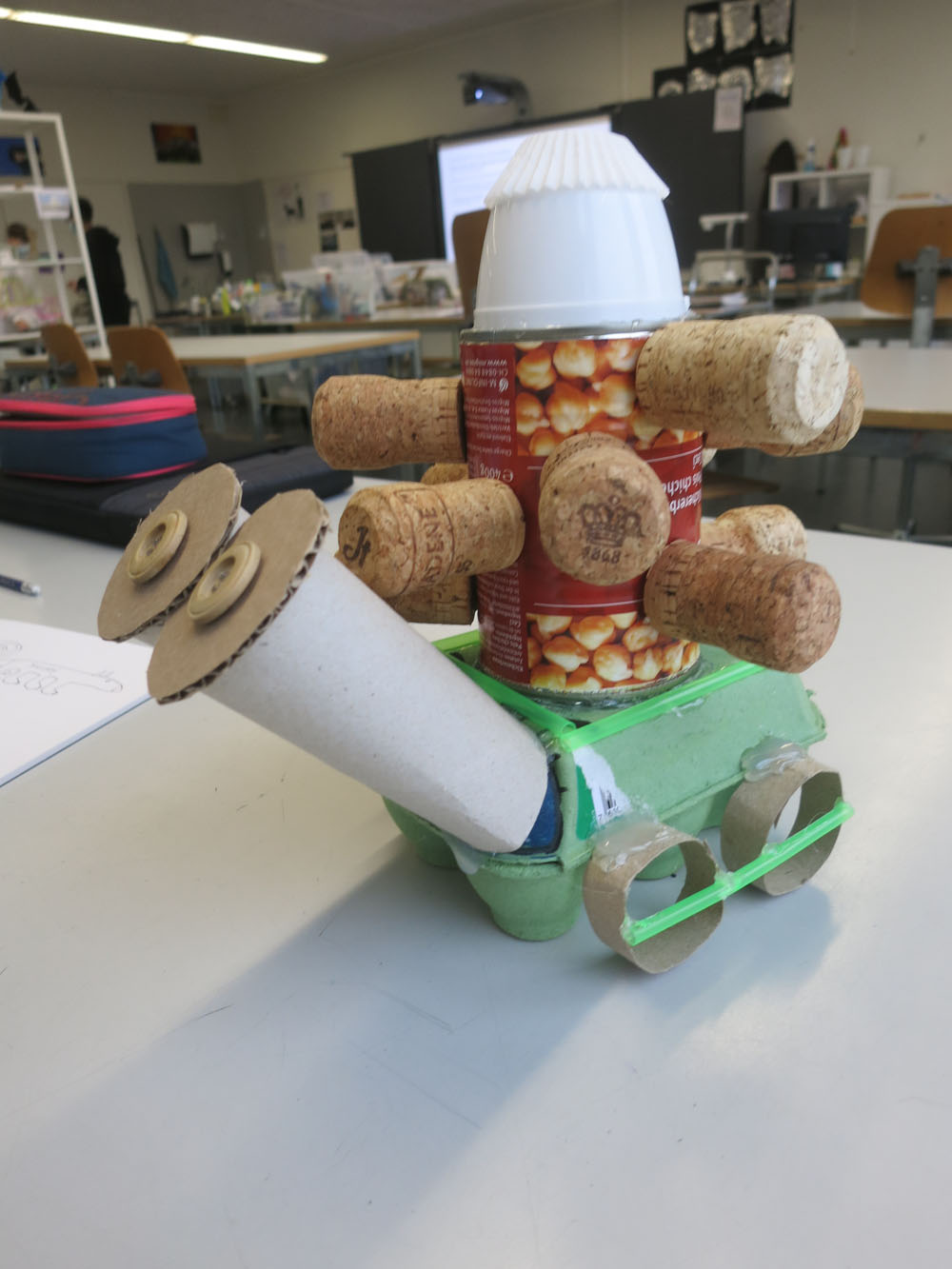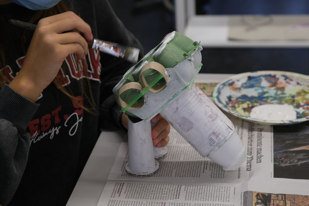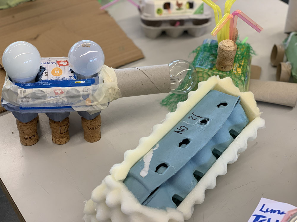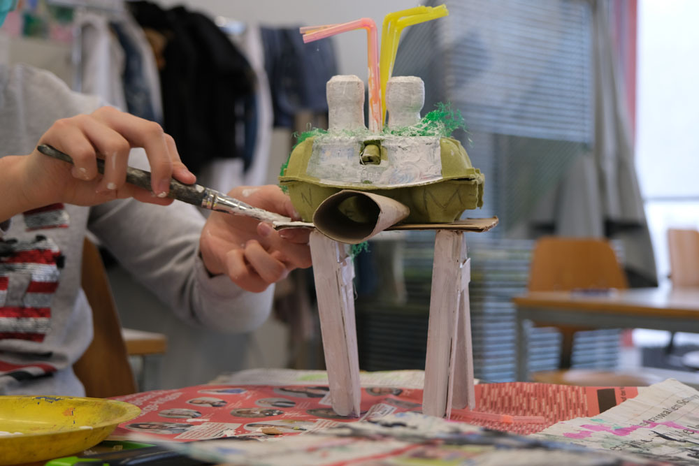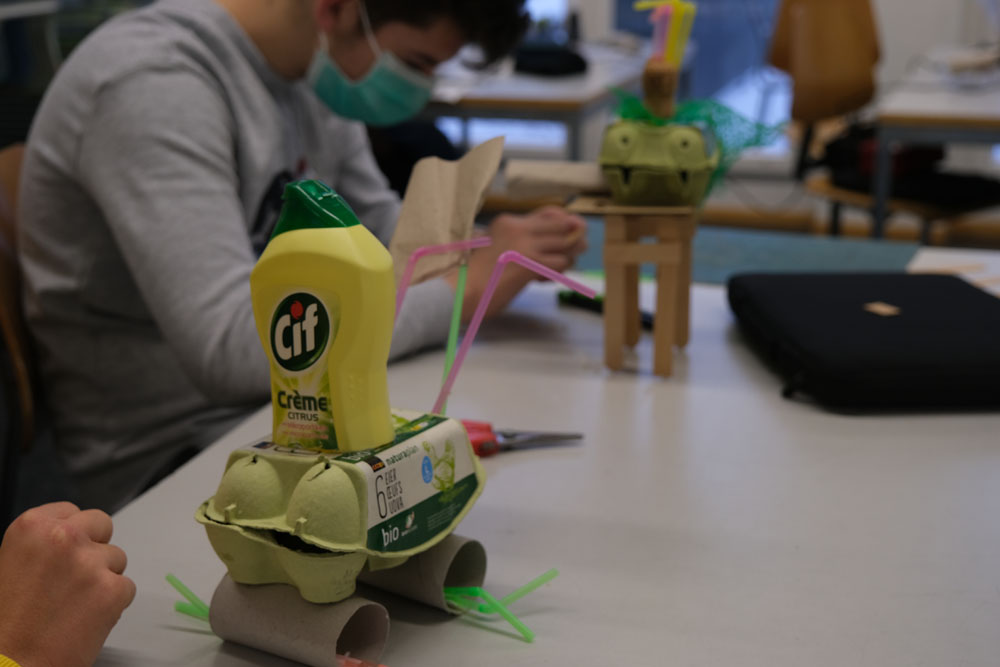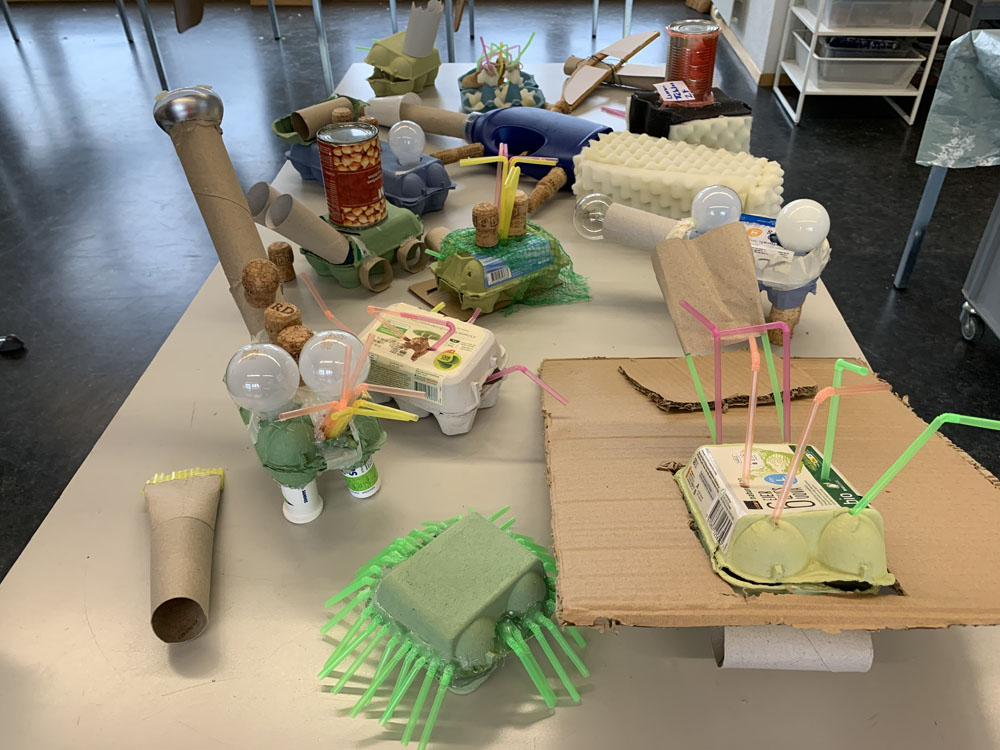 À partir de divers matériaux, les élèves élaborent des créatures fantastiques en imaginant et en expérimentant, en collant et en emboîtant, en combinant et en construisant. Ils s’inspirent d’un choix de matériaux recyclés pour créer des figurines. Les élèves utilisent ensuite une créature pour expérimenter librement les jeux d’ombre et de lumière, et prennent des photos en variant les points de vue, le cadrage et les proportions. À l’aide de leurs photographies, d’une fiche descriptive et d’un story-board, ils créent une histoire visuelle personnelle autour de leur créature.