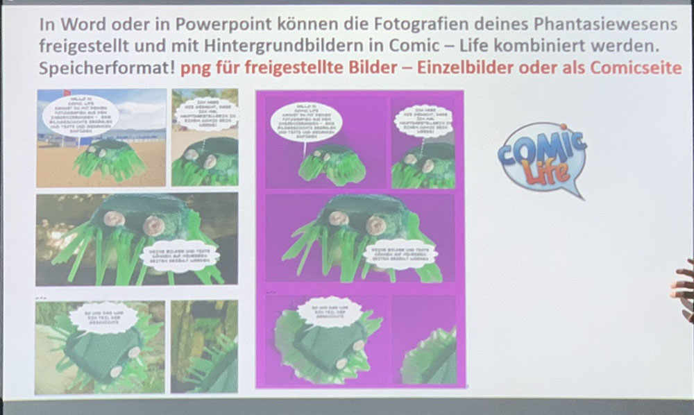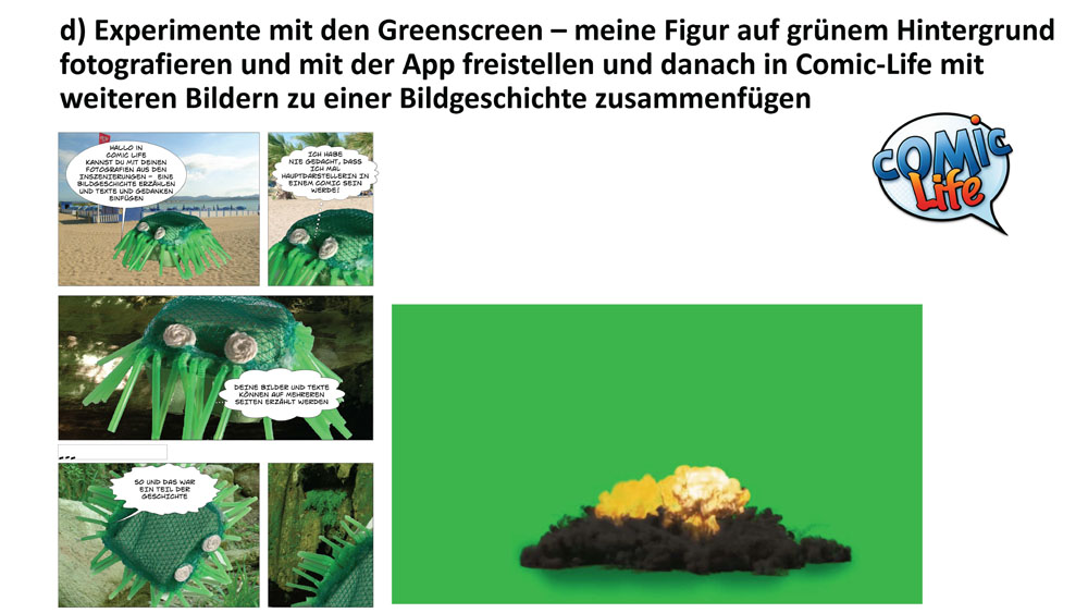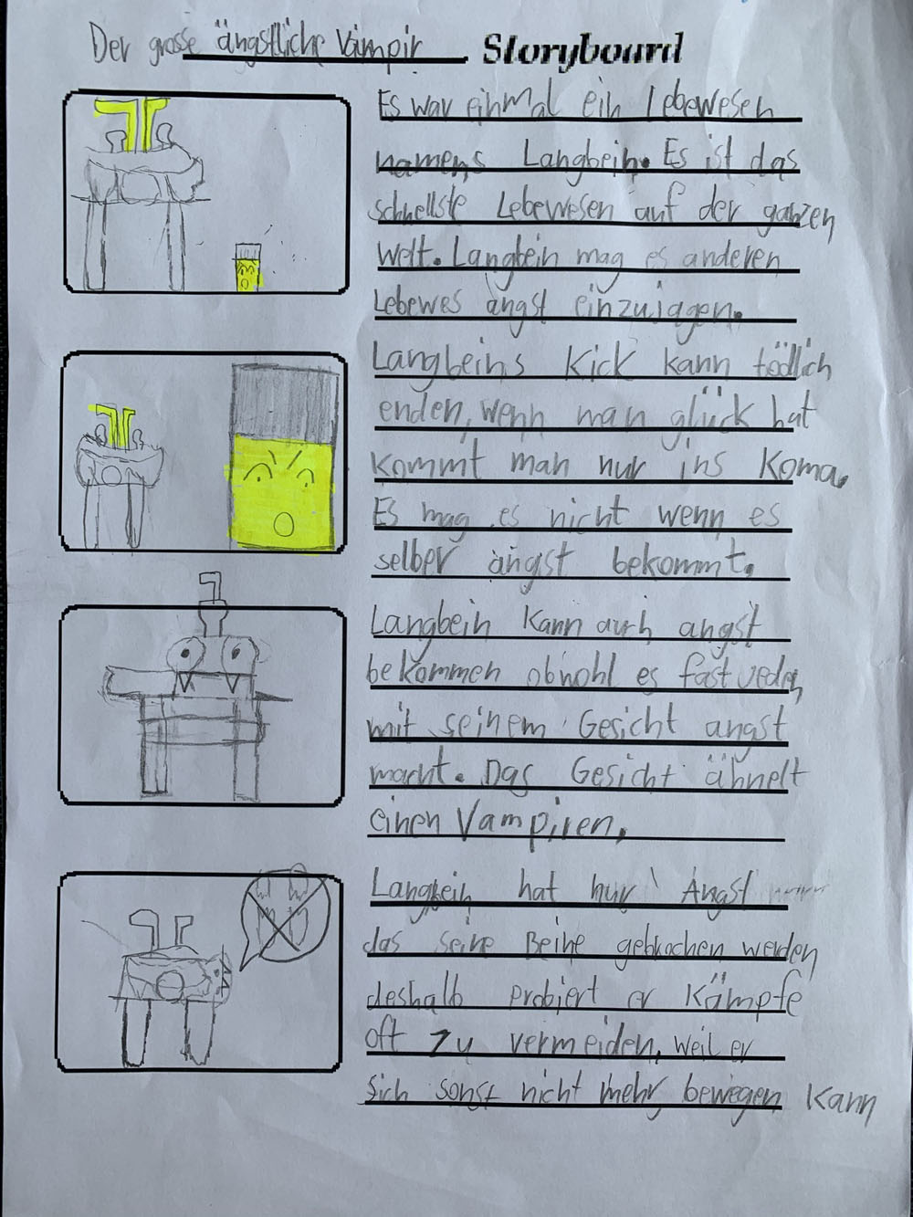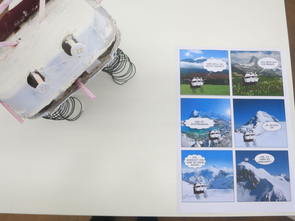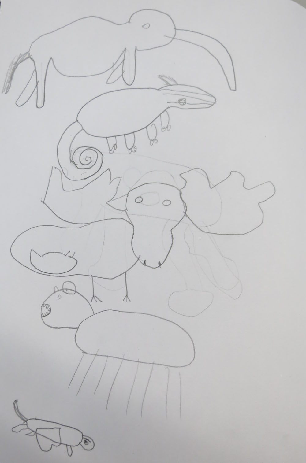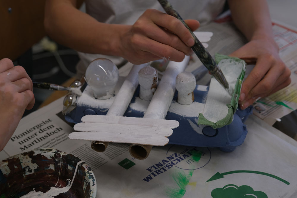 À partir de divers matériaux, les élèves élaborent des créatures fantastiques en imaginant et en expérimentant, en collant et en emboîtant, en combinant et en construisant. Ils s’inspirent d’un choix de matériaux recyclés pour créer des figurines. Les élèves utilisent ensuite une créature pour expérimenter librement les jeux d’ombre et de lumière, et prennent des photos en variant les points de vue, le cadrage et les proportions. À l’aide de leurs photographies, d’une fiche descriptive et d’un story-board, ils créent une histoire visuelle personnelle autour de leur créature.