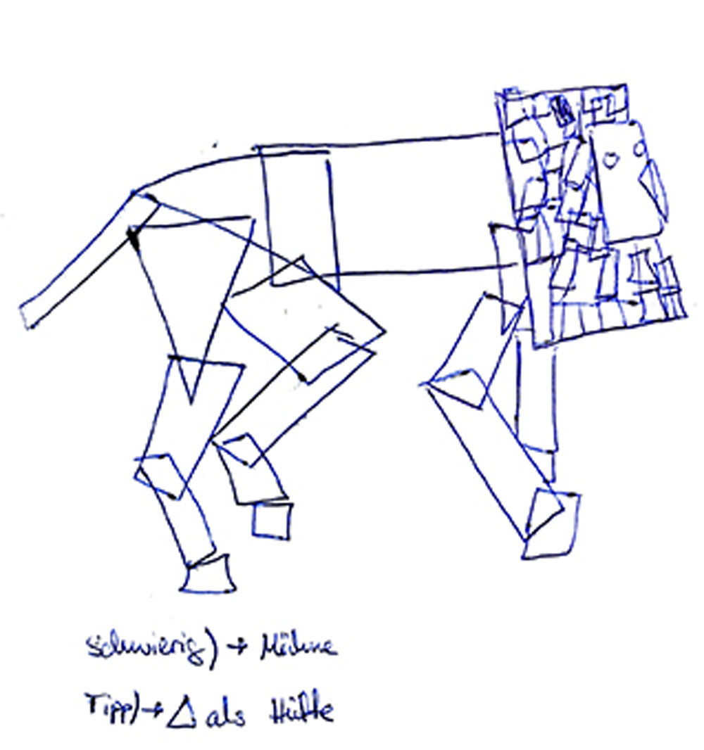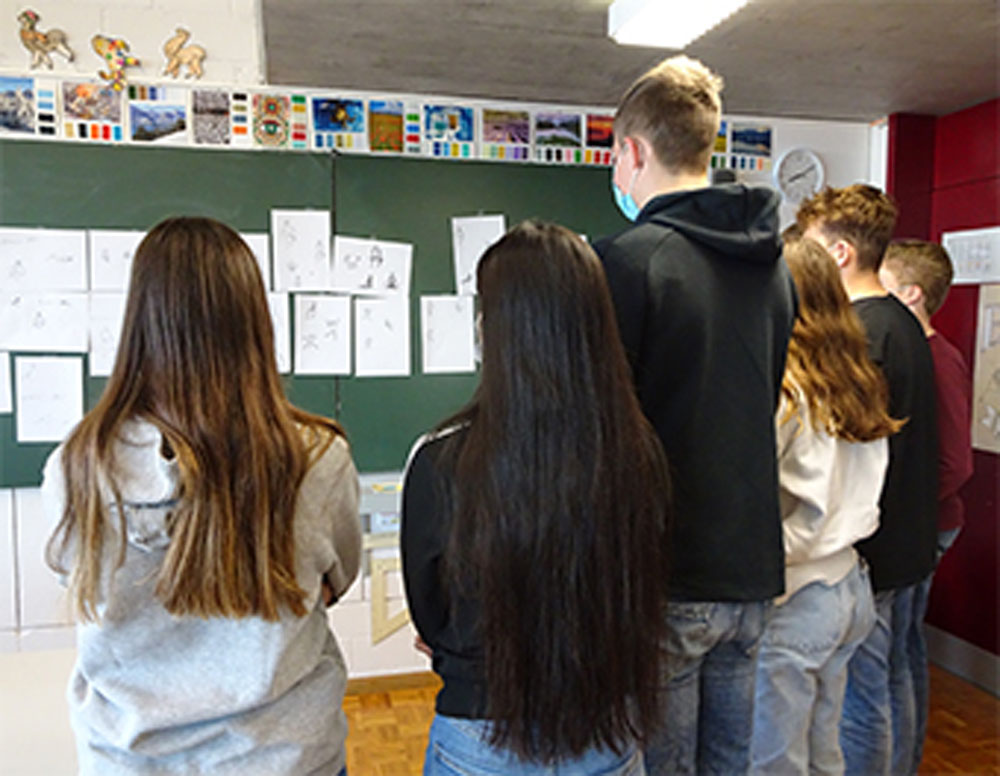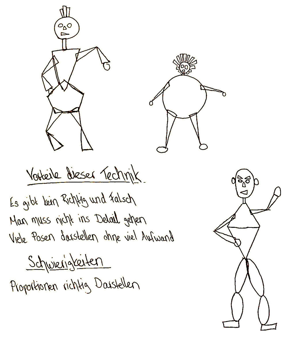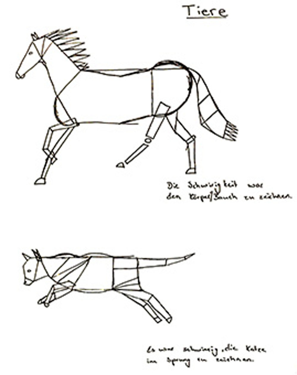 il y a plus de 40 000 ans. Jusqu’au Moyen Âge, le dessin était considéré comme un artisanat. Depuis la Renaissance, il représente une forme d’art à part entière. Le dessin figuratif occupe aujourd’hui encore une position majeure dans le champ artistique. Les élèves élaborent des figures en action par des dessins rapides, puis les mettent en scène dans l’espace à l’aide de fil de fer gainé et de ruban adhésif.