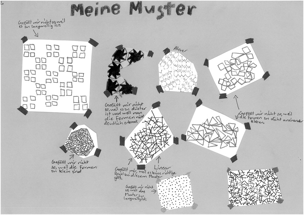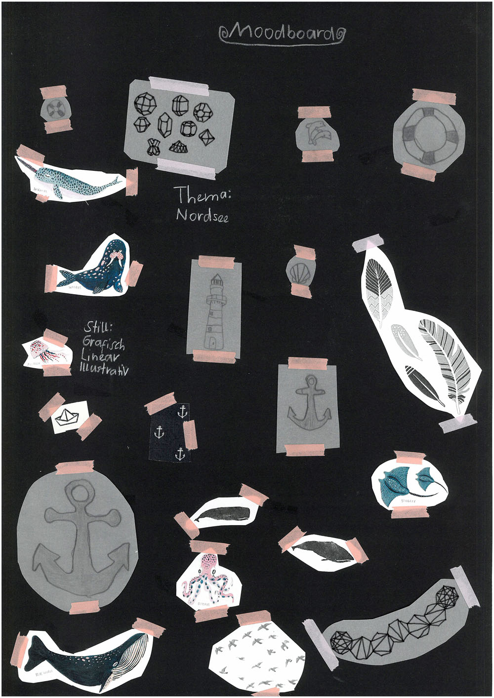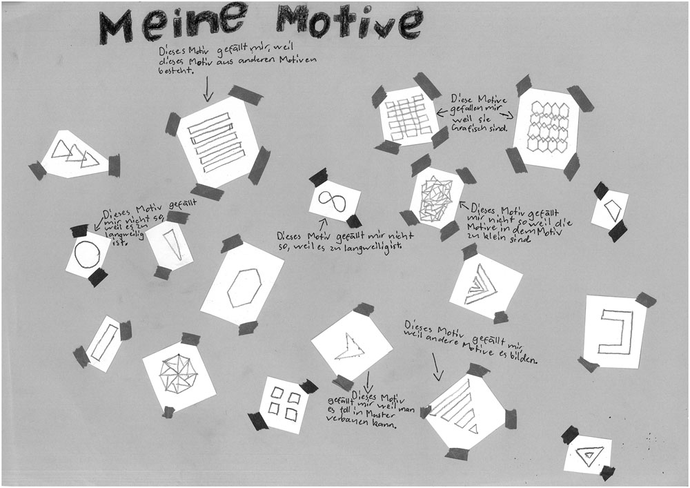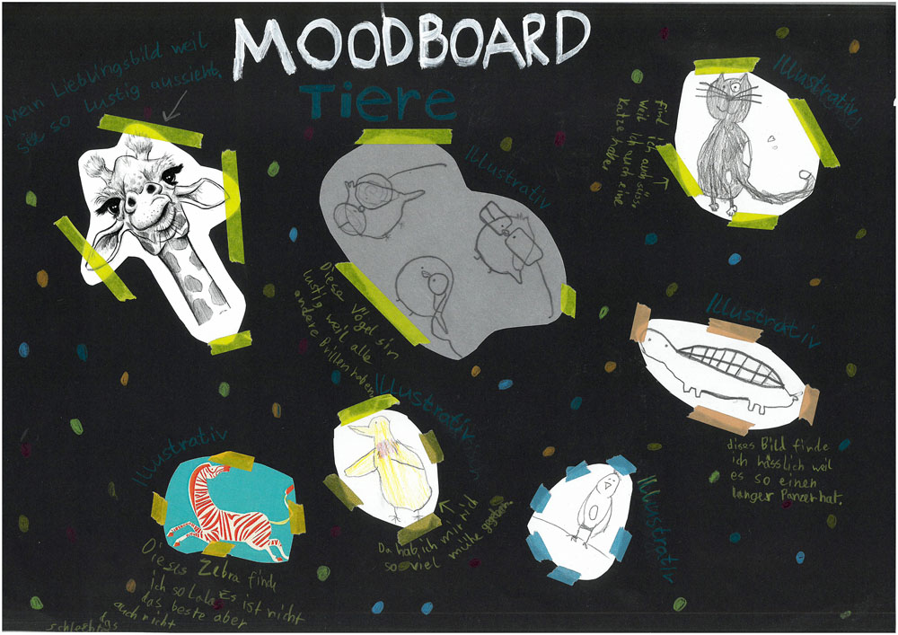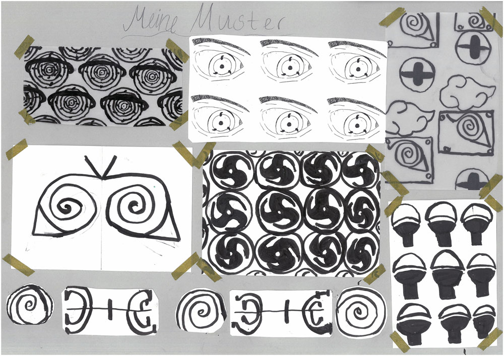 Partant de leurs propres intérêts, les élèves créent une planche d’inspiration (moodboard), dessinent des éléments graphiques et les réunissent dans une collection de motifs. Ils et elles se familiarisent avec le vocabulaire technique et les méthodes pour composer des motifs, et documentent leur processus de création. La séquence d’enseignement se concentre sur la découverte ludique d’éléments